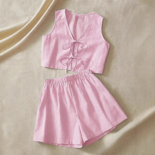 Ina | Dames Set – Crop Top met Strik & Hoge Taille Shorts – Ademend en Trendy voor de Zomer
