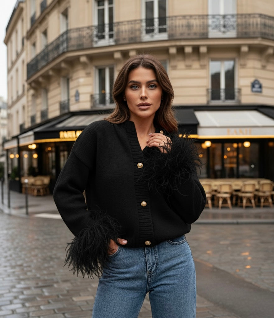 Elegante dames gebreide cardigan met pluimen voor elke gelegenheid